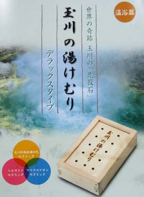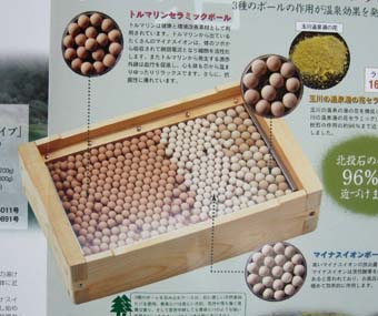 秋田県 玉川温泉 A玉川の温泉湯ノ花セラミックボール Bマイナスイオンボール ○実用新案登録 弟3094011号 定価 \210,000 |